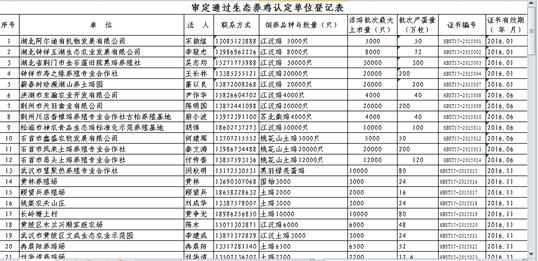 湖北省审定通过生态养鸡认定的单位名单(有效期为2016年1月至2016年12月)