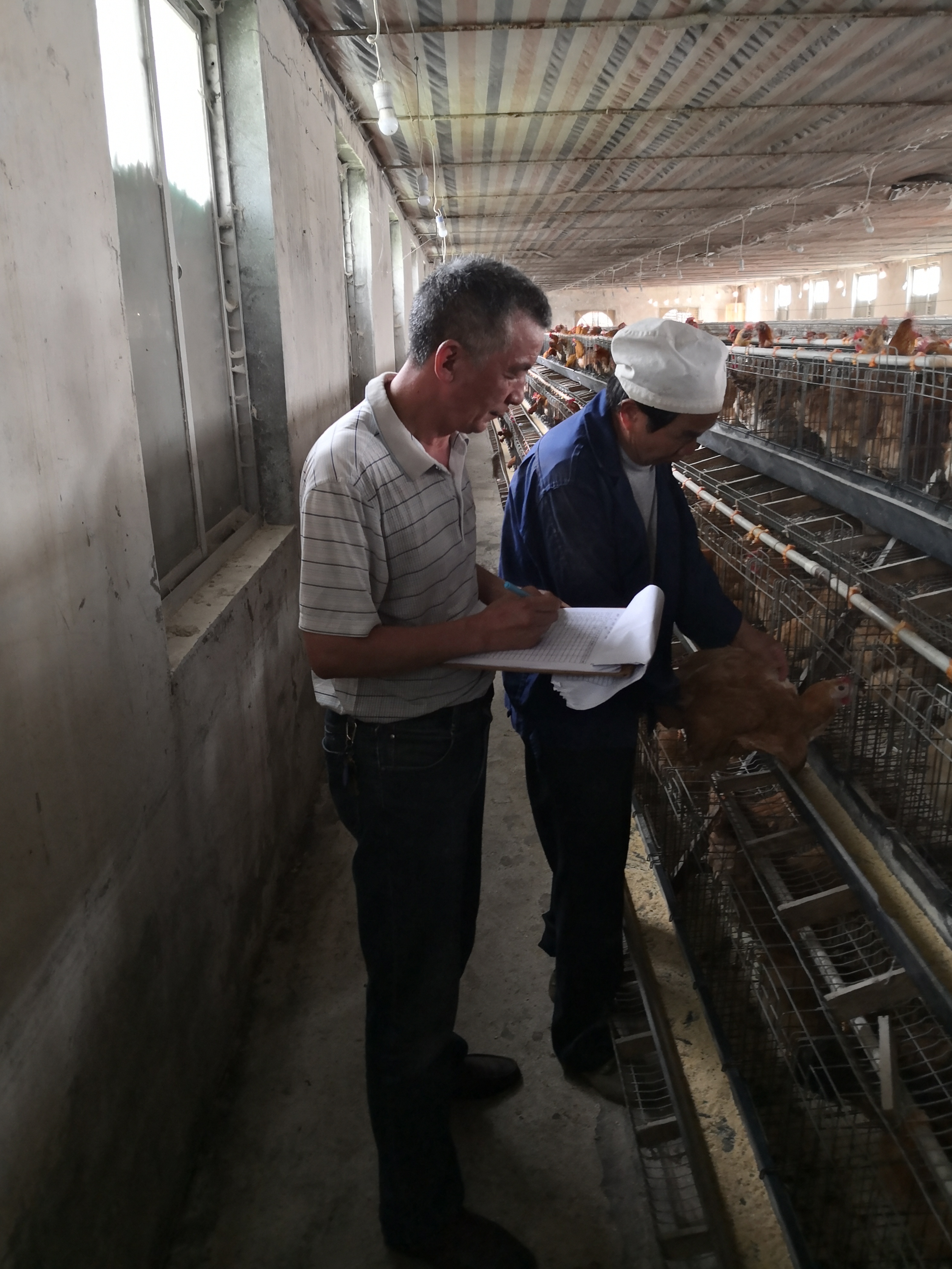 6月8日,国家肉鸡产业技术体系武汉综合试验站站长、省农科院畜牧兽医研究所家禽育种专家申杰副研究员赴十堰康达禽业有限公司指导郧阳大鸡保种工作。 申杰来到十堰市丹江口市六里坪镇蒿口村,深入十堰康达禽业有限公司的郧阳大鸡保种场,现场指导郧阳大鸡保种核心群选种选配,按照郧阳大鸡品种标准,严格选择鸡的冠形、冠色、喙、耳叶、羽色、肤色、胫色等外貌特征,结合前期观测的生长性能、产蛋性能等指标,制定综合选择指数,选留种用公鸡与母鸡,按照1:10的公母配比,组建核心群家系,并要求公司采用鸡的人工授精高效繁育技术,繁殖郧阳大鸡新世代,系谱孵化,全同胞接雏,接养的每只雏鸡佩戴终生翅号。